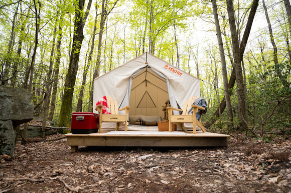If you enjoy the experience of tent camping but don’t want the added work of setting up a tent — or perhaps you just want something a little more upscale, discover Tentrr campsites at Blackwater Falls State Park, Cacapon Resort State Park, Coopers Rock State Forest, Hawks Nest State Park and Lost River State Park. Each site includes a pre-set canvas tent on its own wooden deck platform, a queen-size memory foam mattress, solar shower, and more. When on the reservation page, click ‘Camping’ and the date you would like to reserve a Tentrr campsite. If a site is available on your dates you’ll see the park name and Tentrr, then click View Sites for details. Tentrr options, like other overnight accommodation options, are only visible if a site(s) are available for reservation.